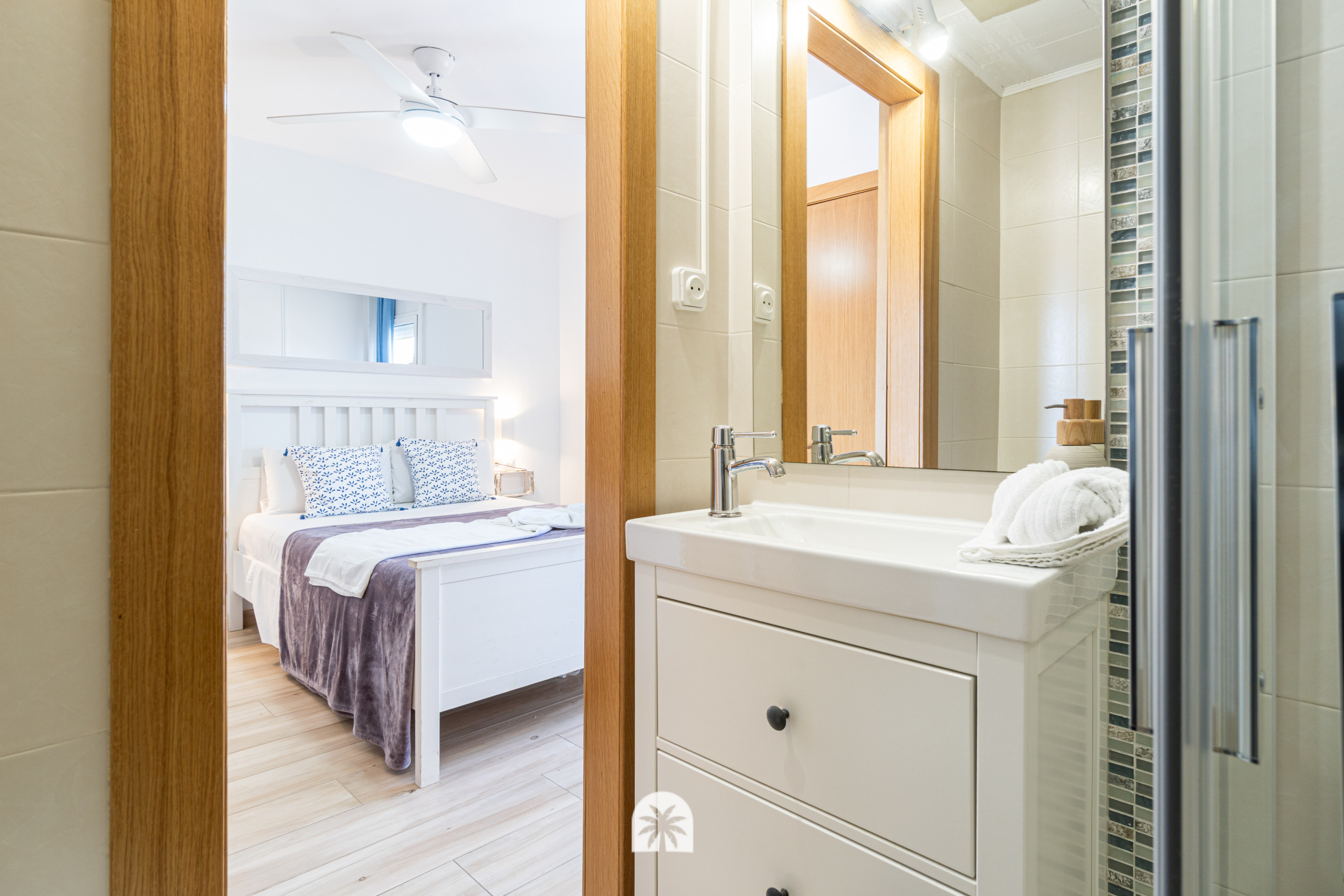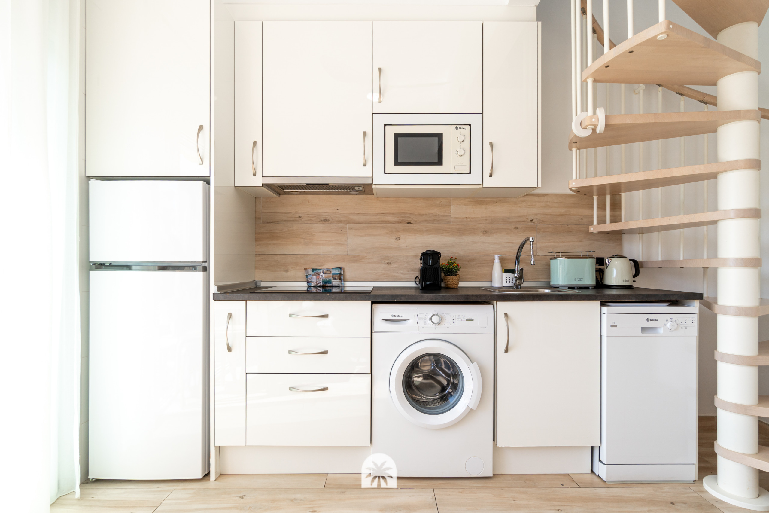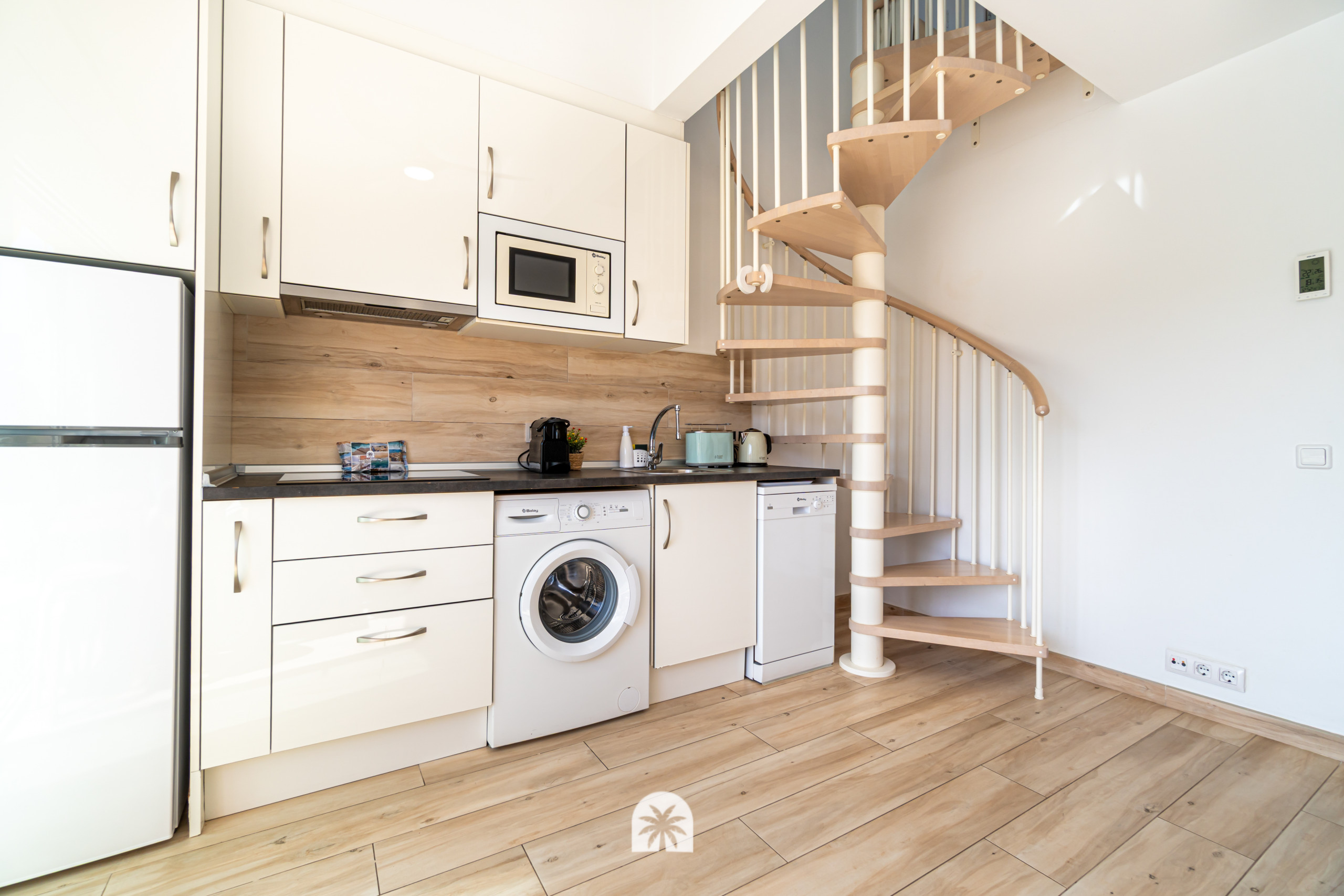 La cocina es independiente y está completamente equipada con todo lo necesario para una estancia práctica: nevera, microondas, lavavajillas, cafetera y más. Además, el apartamento dispone de terraza y balcón, lo que aporta luz y un extra de comodidad en el día a día.
