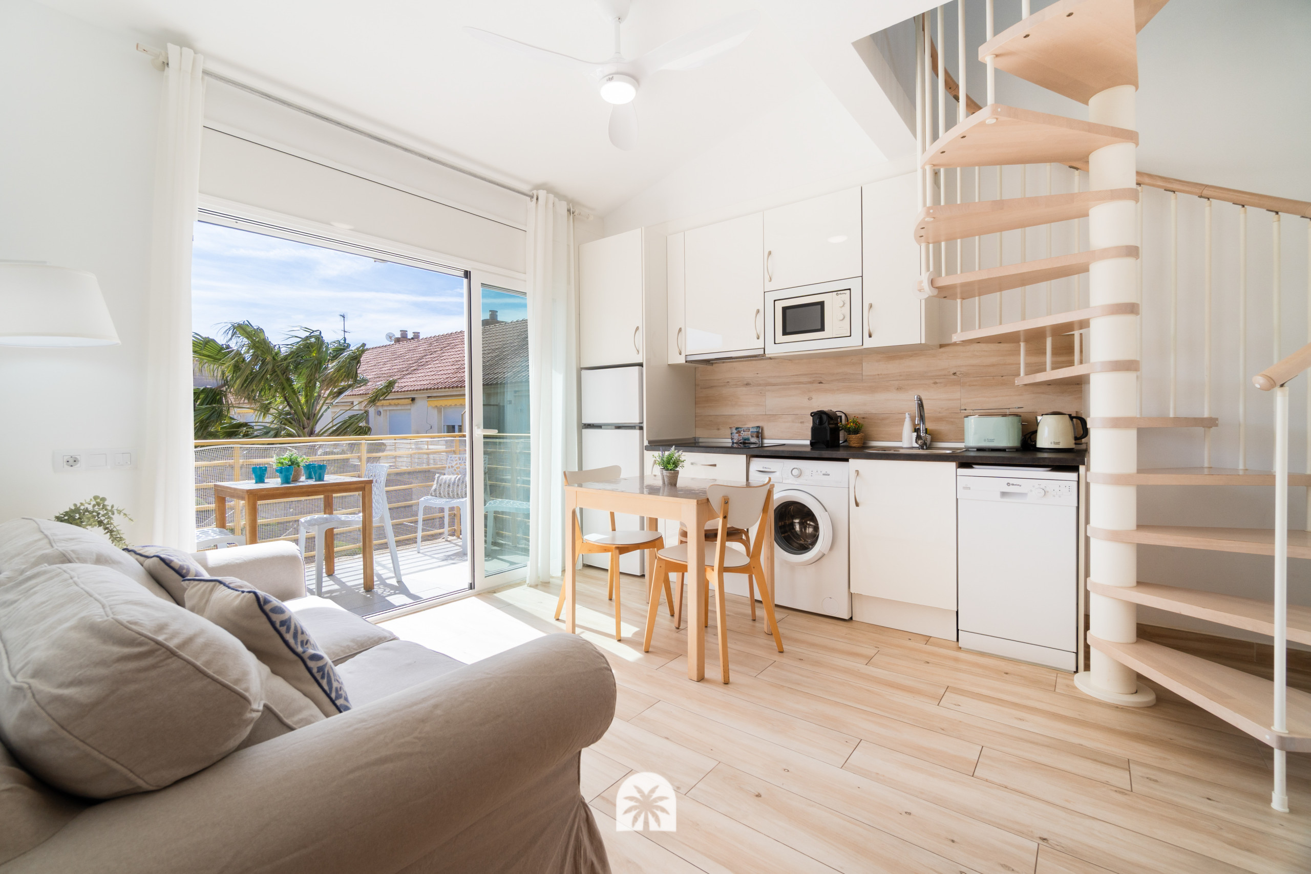 En la planta principal encontrarás el salón, la cocina totalmente equipada y una agradable terraza donde relajarte después de un día de playa. Es el espacio perfecto para descansar, comer tranquilo o simplemente desconectar.