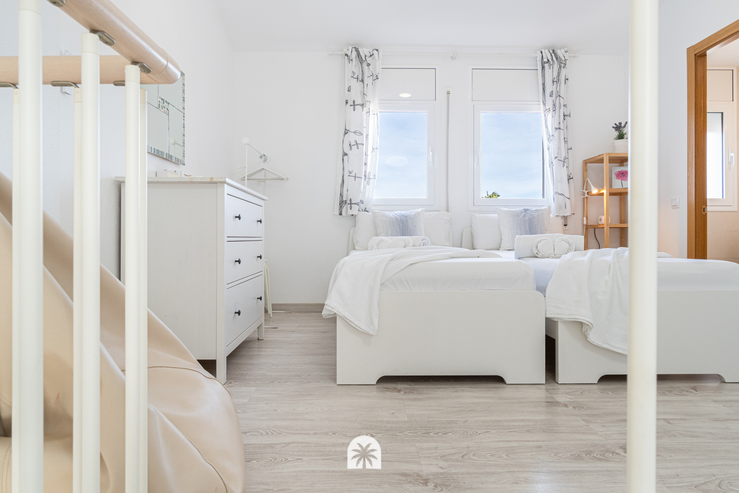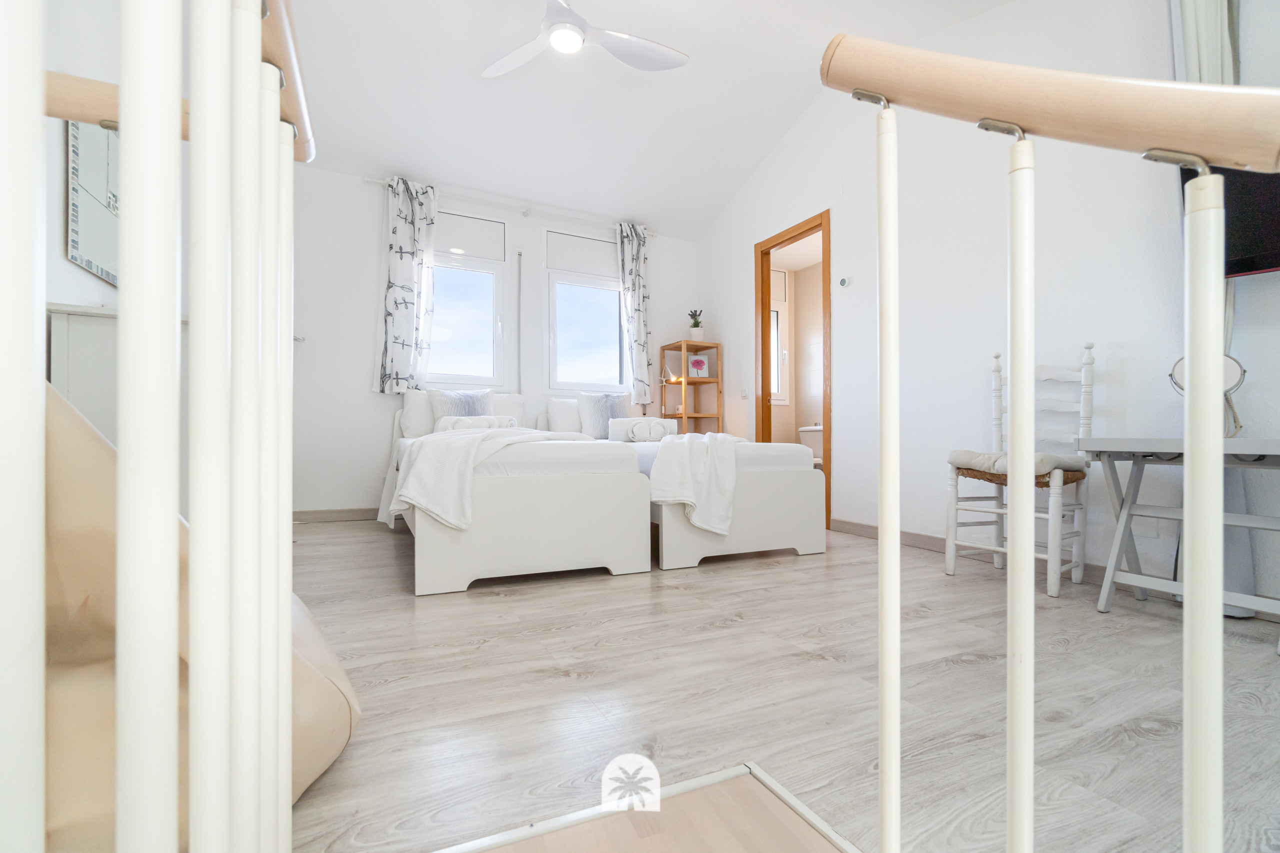 La planta superior está pensada como zona independiente, ideal para niños o jóvenes: tienen su propio espacio con Smart TV y un aseo, lo que permite que cada uno tenga su intimidad y ritmo.