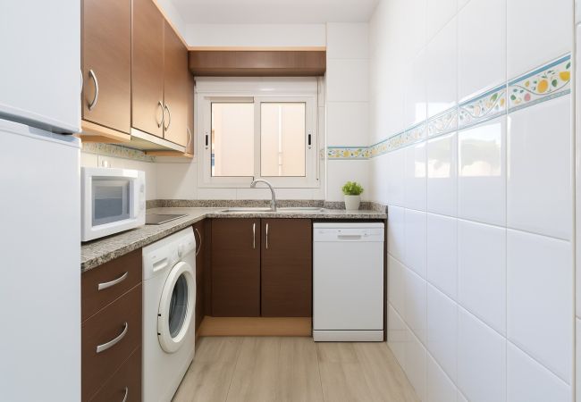 La cocina es independiente y está completamente equipada con todo lo necesario para una estancia práctica: nevera, microondas, lavavajillas, cafetera y más. Además, el apartamento dispone de terraza y balcón, lo que aporta luz y un extra de comodidad en el día a día.