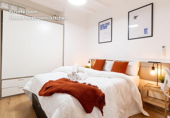 Lloguer per habitacions en Tarragona posseeix 1 dormitori(s) i capacitat per a 2 persones. Allotjament de 65 m². Disposa de rentadora, planxa, accés internet (wifi), secador de cabell, Televisió.La cuina independent, de vitroceràmica, està equipada amb nevera, microones, forn, congelador, estris/cuina, cafetera i torradora.