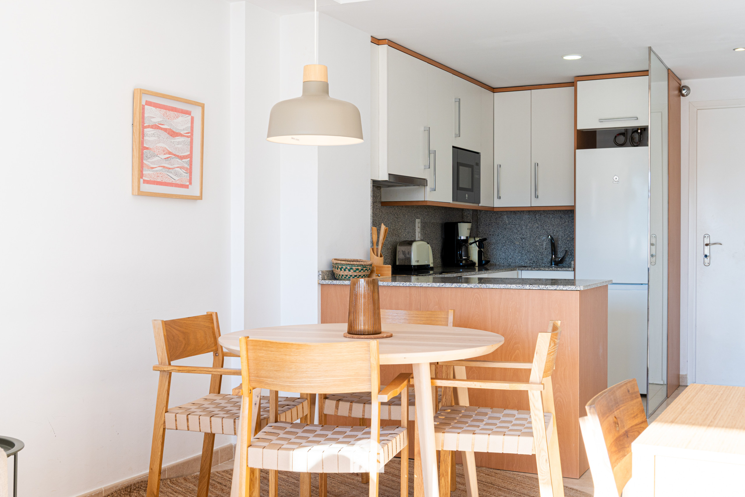 The apartment in Mont-Roig del Camp has 2 bedrooms and has capacity for 6 people. The apartment is 60 m². The accommodation is equipped with the following items: lift, washing machine, iron, internet (Wi-Fi), hair dryer, central heating, air-conditioned, communal swimming pool, garage. In the hotplate of glass ceramics open plan kitchen, refrigerator, microwave, oven, freezer, kitchen utensils, coffee machine, toaster and kettle are provided.