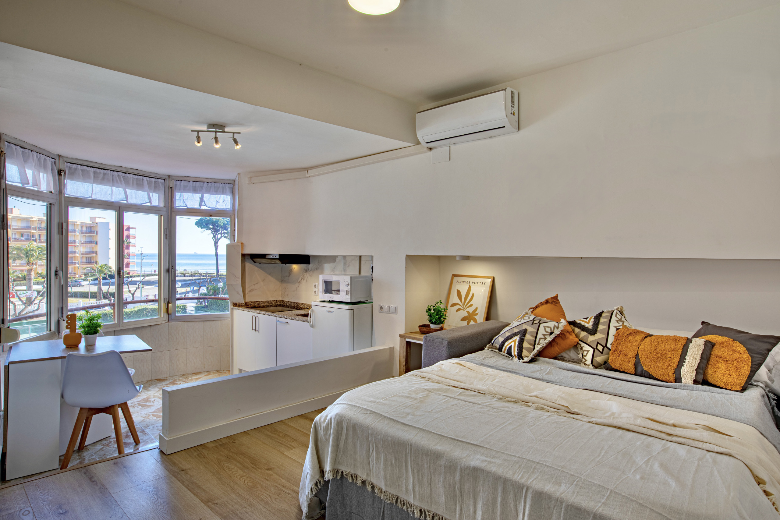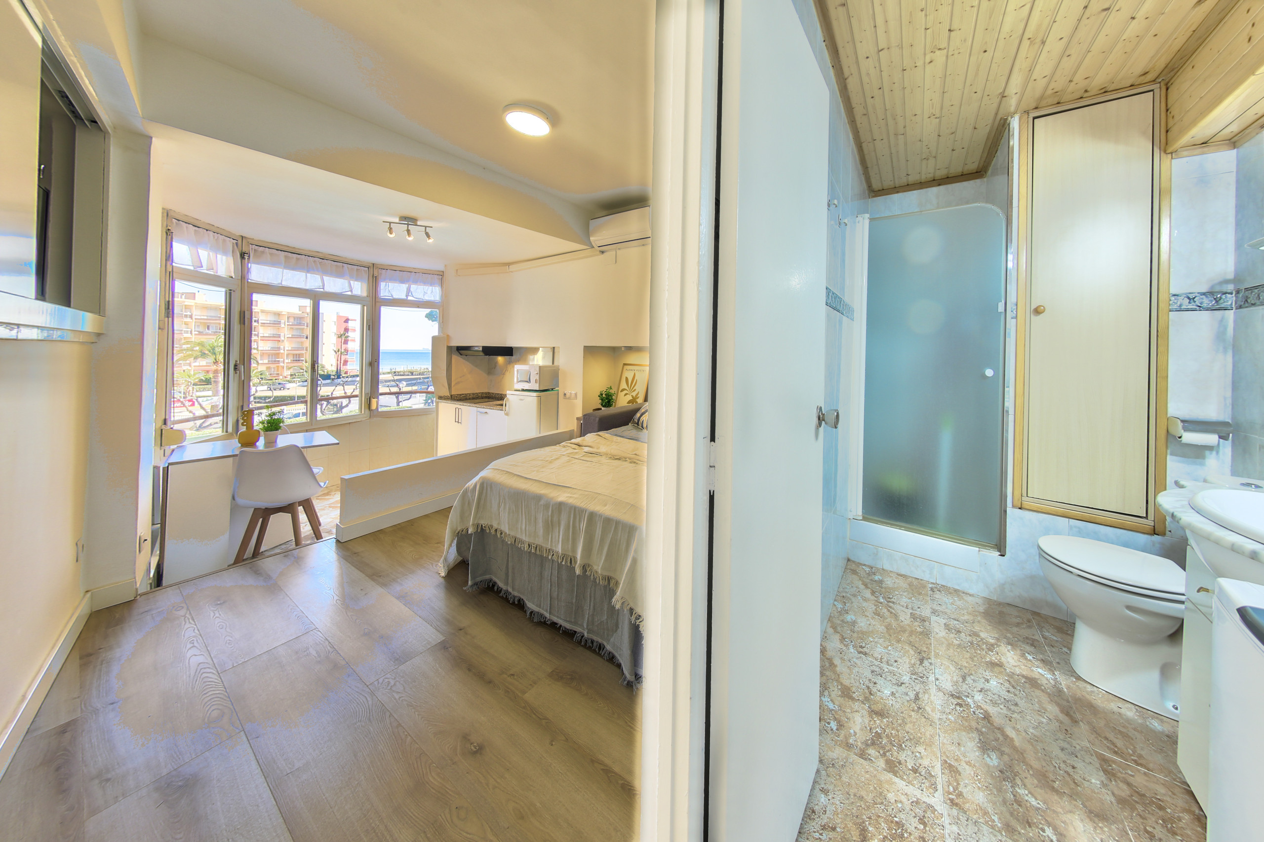 Wake up just steps from the sea at Mediterranean Way – Promar 248. A comfortable and bright apartment with air conditioning, a fully equipped kitchen and a private bathroom to make you feel at home. Relax in the outdoor pool after a day at the beach. Just minutes from Playa de la Pineda, Aquopolis, PortAventura and Ferrari Land. The perfect balance between relaxation and fun on the Costa Dorada.